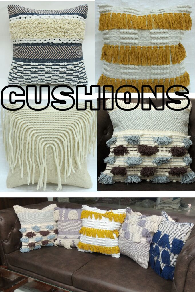 In addition to rugs, we also produce a variety of home and lifestyle products such as cushions, baskets, crochet items, and handcrafted art & craft pieces.